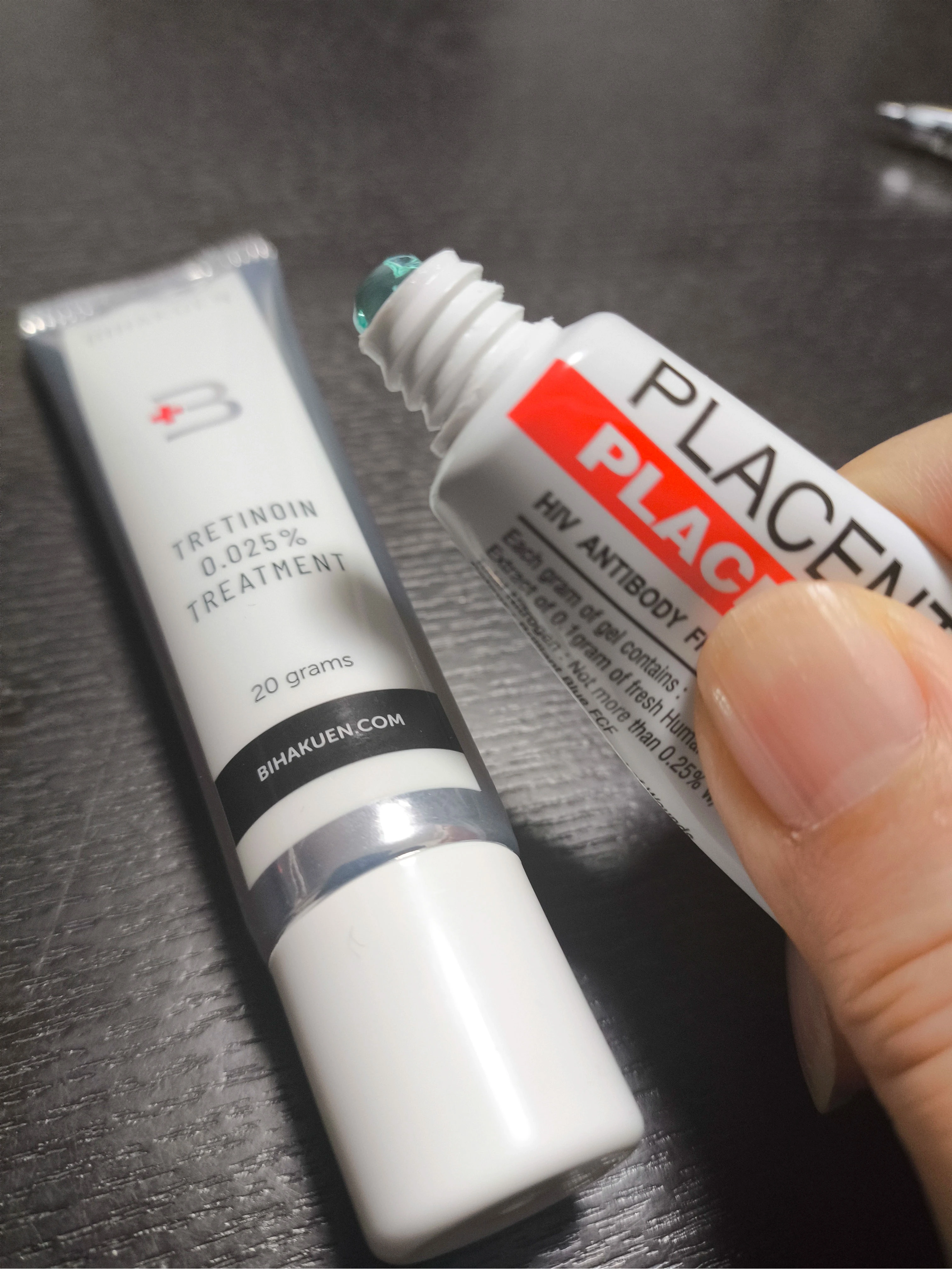 プラセントレックスを使い始めて1週間が経ちました。最初は独特な色と香りに驚きましたが、今では慣れて、塗った直後の肌がピンと引き締まる感覚が癖になっています。トレチノイン使用中のデリケートな肌にもスッと馴染んで、潤いを守ってくれている安心感があり、肌のキメが整い、内側からふっくらするような変化をこれから楽しみにしています。
